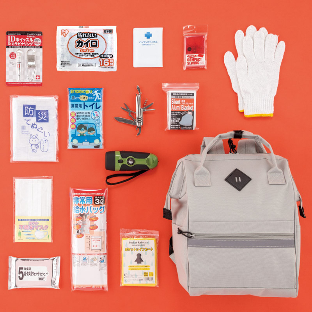 | 内容量 | 収納リュック:36×29×19cm・収納リュック(36×29×19cm)、IDホイッスル&カラビナリング、防災用ウェットティッシュ、マスク、軍手、静音アルミブランケット、ダイナモ充電式多機能ラジオライト、綿棒&絆創膏、給水袋3L、カイロ、レインコート、携帯用トイレ、8徳ナイフ、ソーイングセット、防災てぬぐい・ポリエステル、他 |