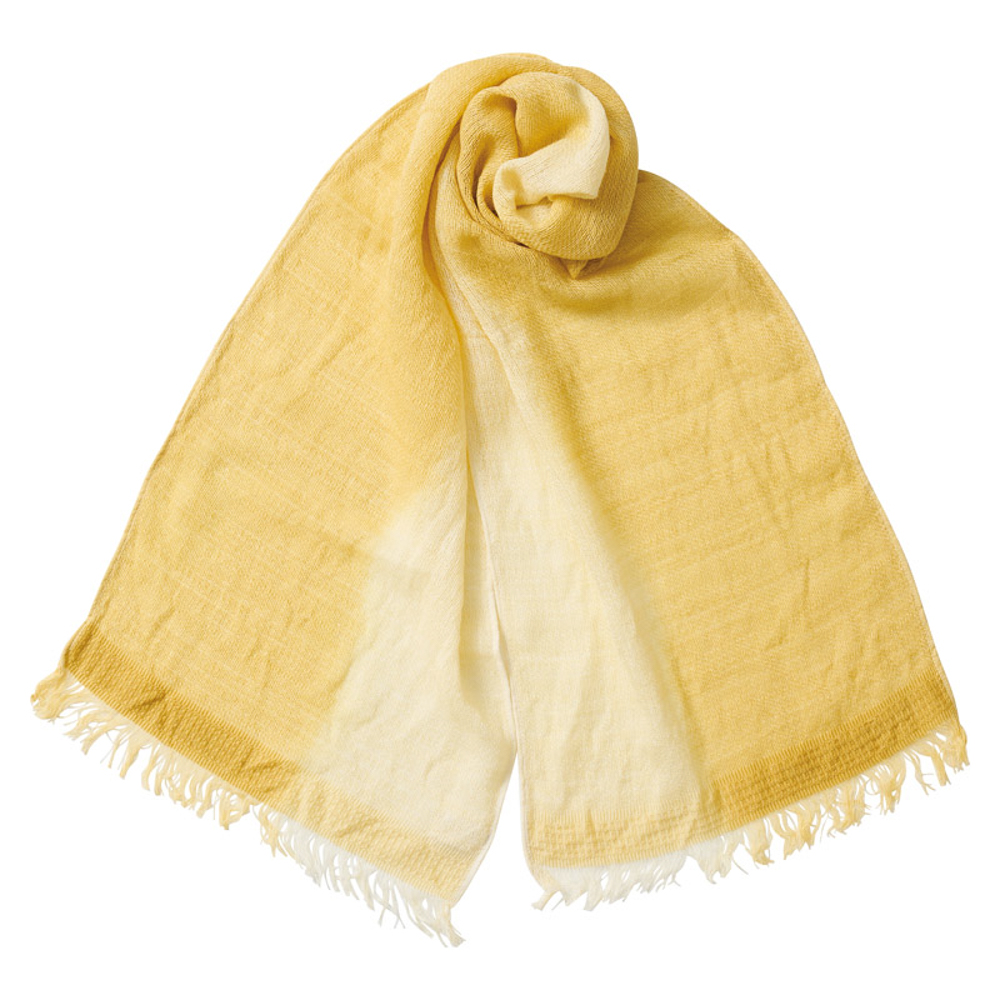 〈天然草木染〉 すみれ織ウールコットンショートマフラーイエロー