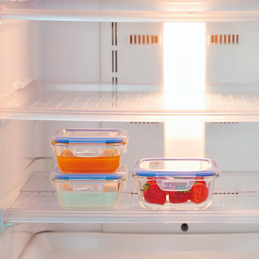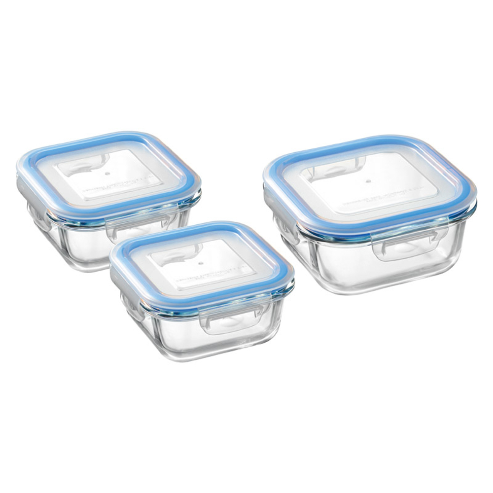 | 内容量 | 300ml(11.6×11.6×5.8cm)×2、510ml(13.8×13.8×6.5cm)×1・容器:耐熱ガラス、蓋:ポリプロピレン、パッキン:シリコーンゴム |