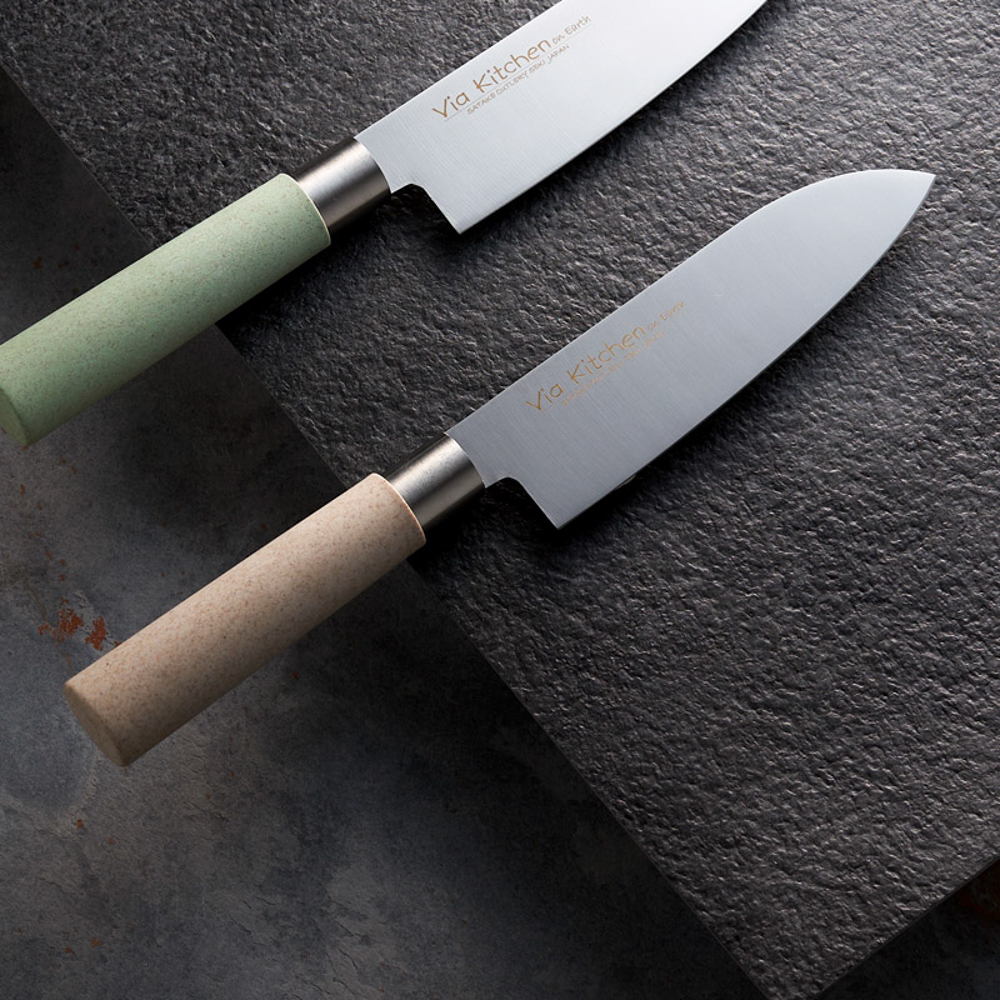 収穫後の麦の茎を主原料としたリサイクル素材を採用したエコな包丁。
