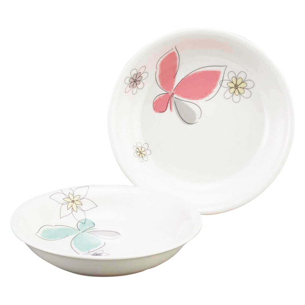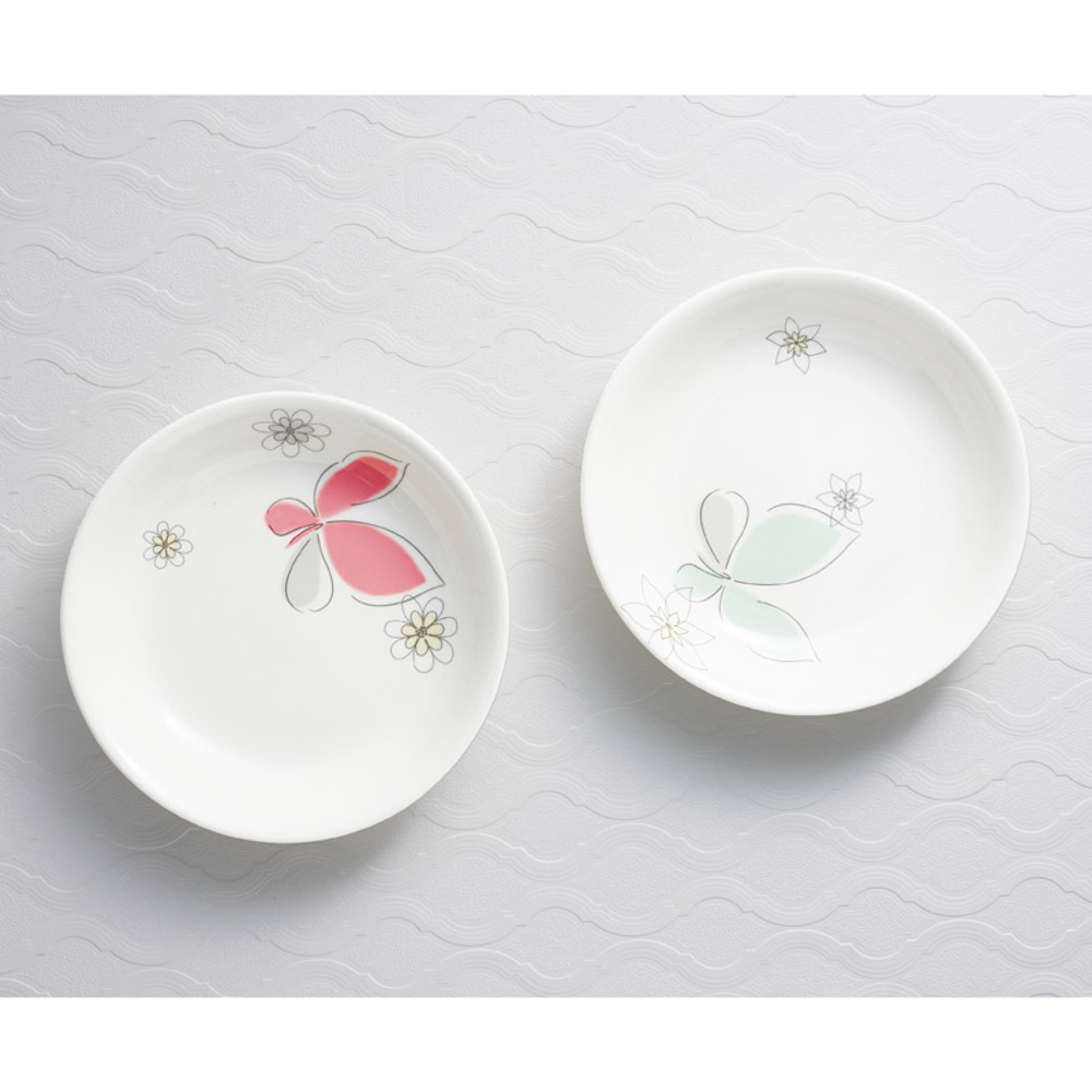 ハナエモリのシンボルマークでもある蝶が優雅に描かれたペアのパスタカレー皿。