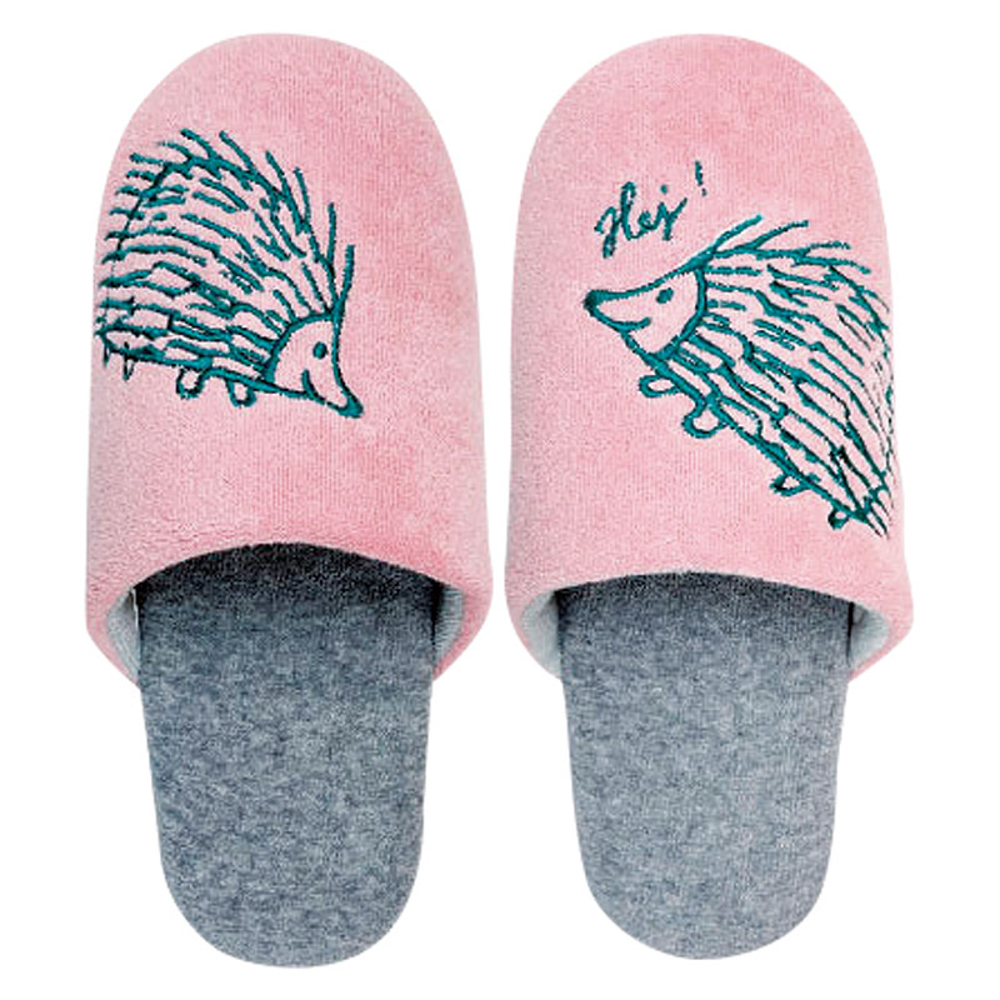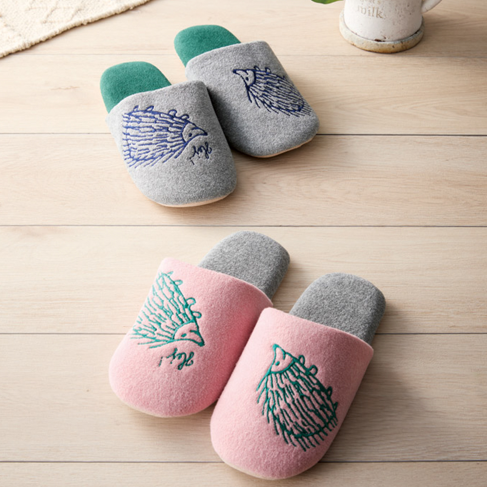 ハリネズミのイギーが左右のスリッパで向かい合って、まるでお話をしているようなかわいいスリッパ。