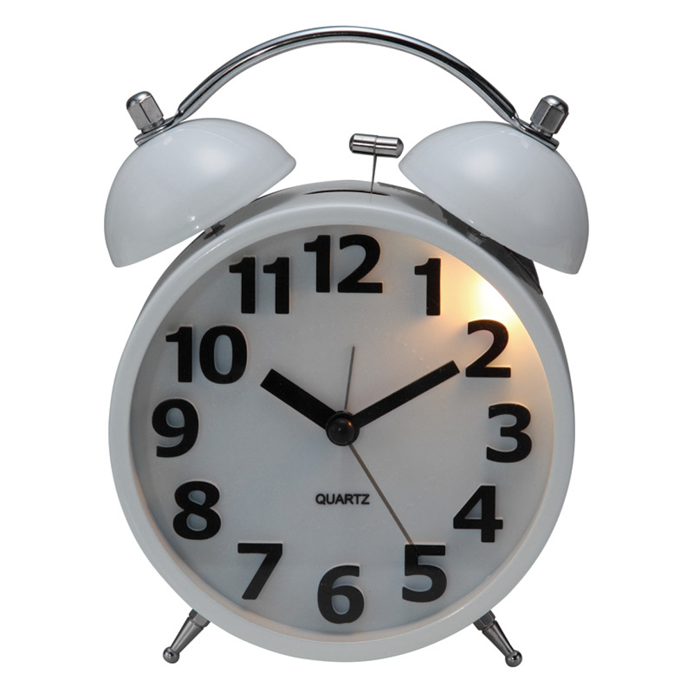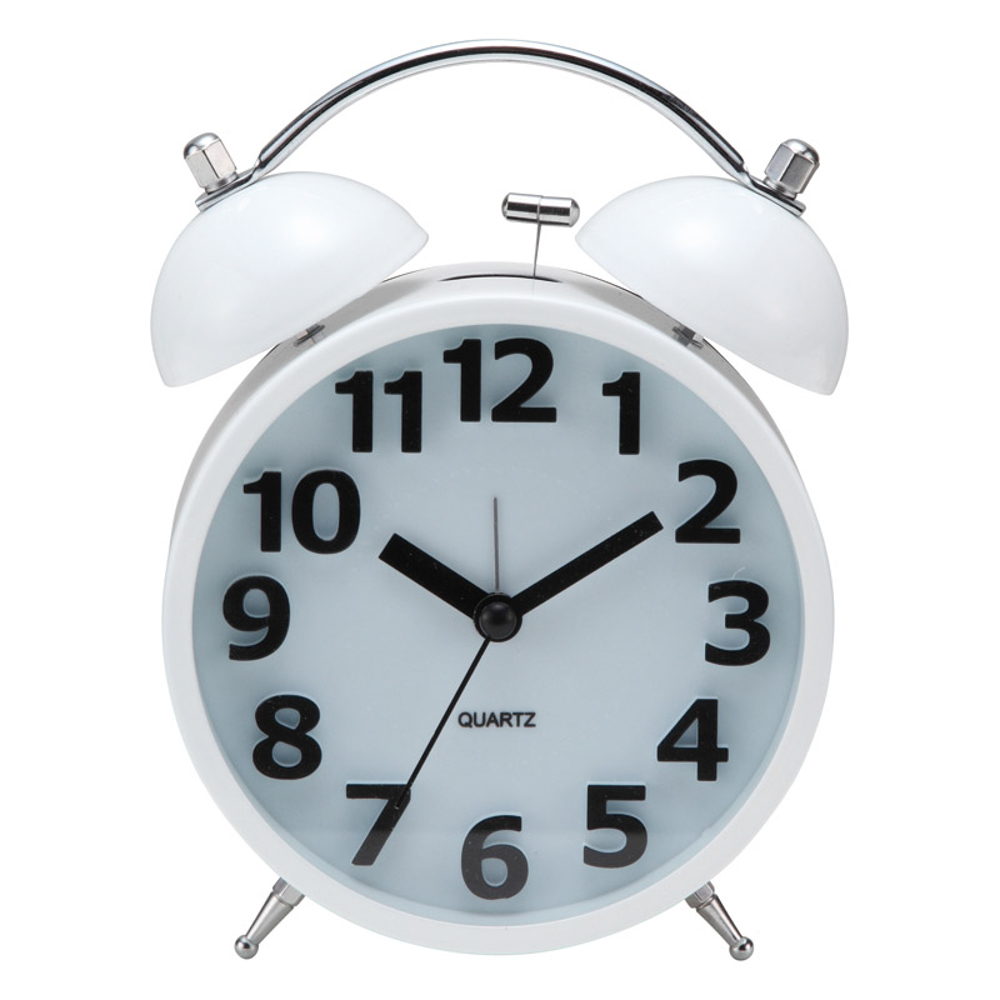 スイープ秒針で流れるように静かに時を刻みます。寝る時にも邪魔にならない目覚まし時計です。アラームは大音量のベルで目覚めをサポートします。文字も大きく、暗闇でも安心なライト機能付です。単3乾電池2本使用(別売)。