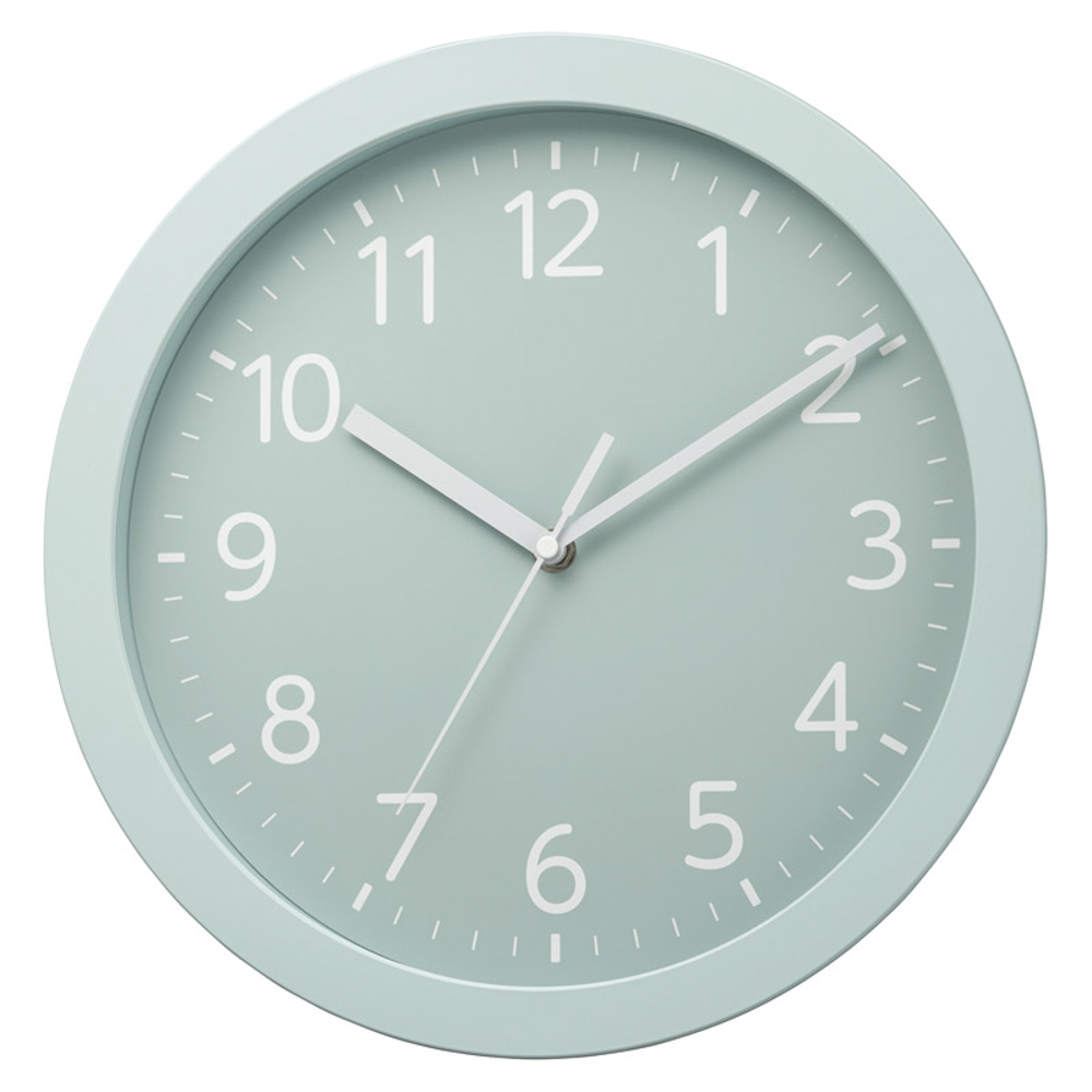 多様なインテリアに合わせやすい、グレイッシュカラーの掛時計。