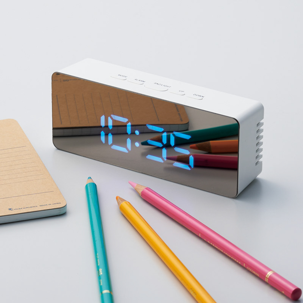 インテリアミラーとデジタルクロックが一体になった便利なインテリアです。