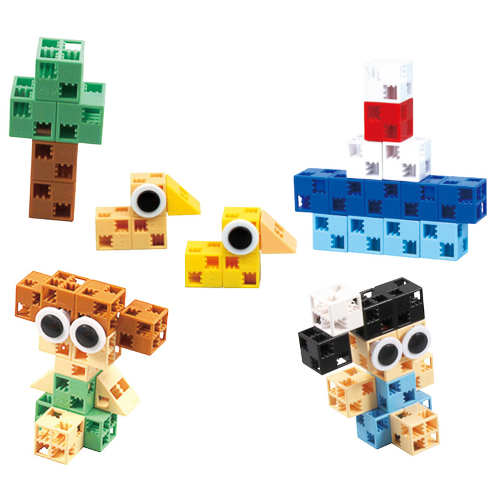 アーテックブロックは複数の面に穴が開いているので、あらゆる方向にブロックを差し込むことができ、まるで粘土遊びやおえかきをするように次々に楽しい作品を作ることができます。