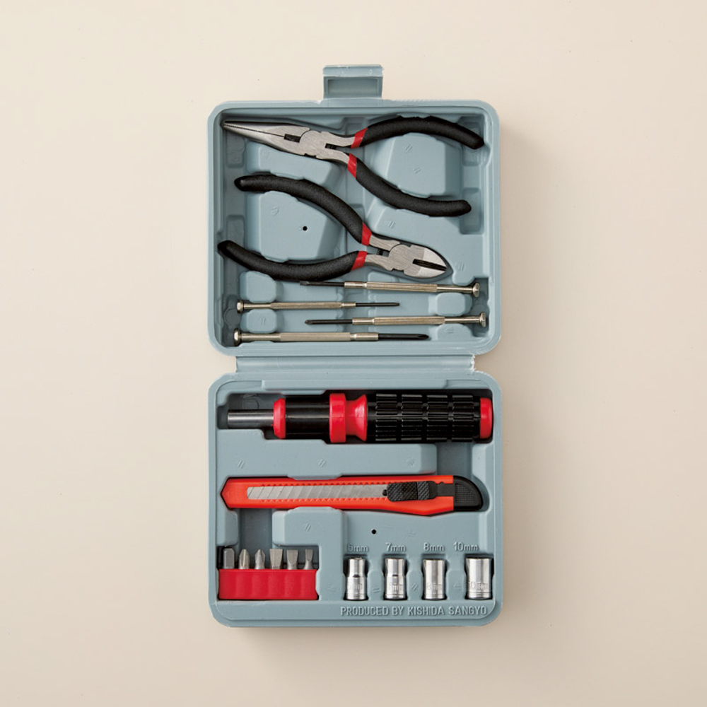 | 内容量 | 15×13×5cm・ビット×5、(+)精密ドライバー×2、(-)精密ドライバー×2、ソケット×4、ラジオペンチ×1、ニッパー×1、ビットドライバー×1、カッターナイフ×1、ビットアダプター×1・クロムバナジウム、カーボンスチール、ポリ塩化ビニル、ポリプロピレン、ポリスチレン、高密度ポリエチレン |