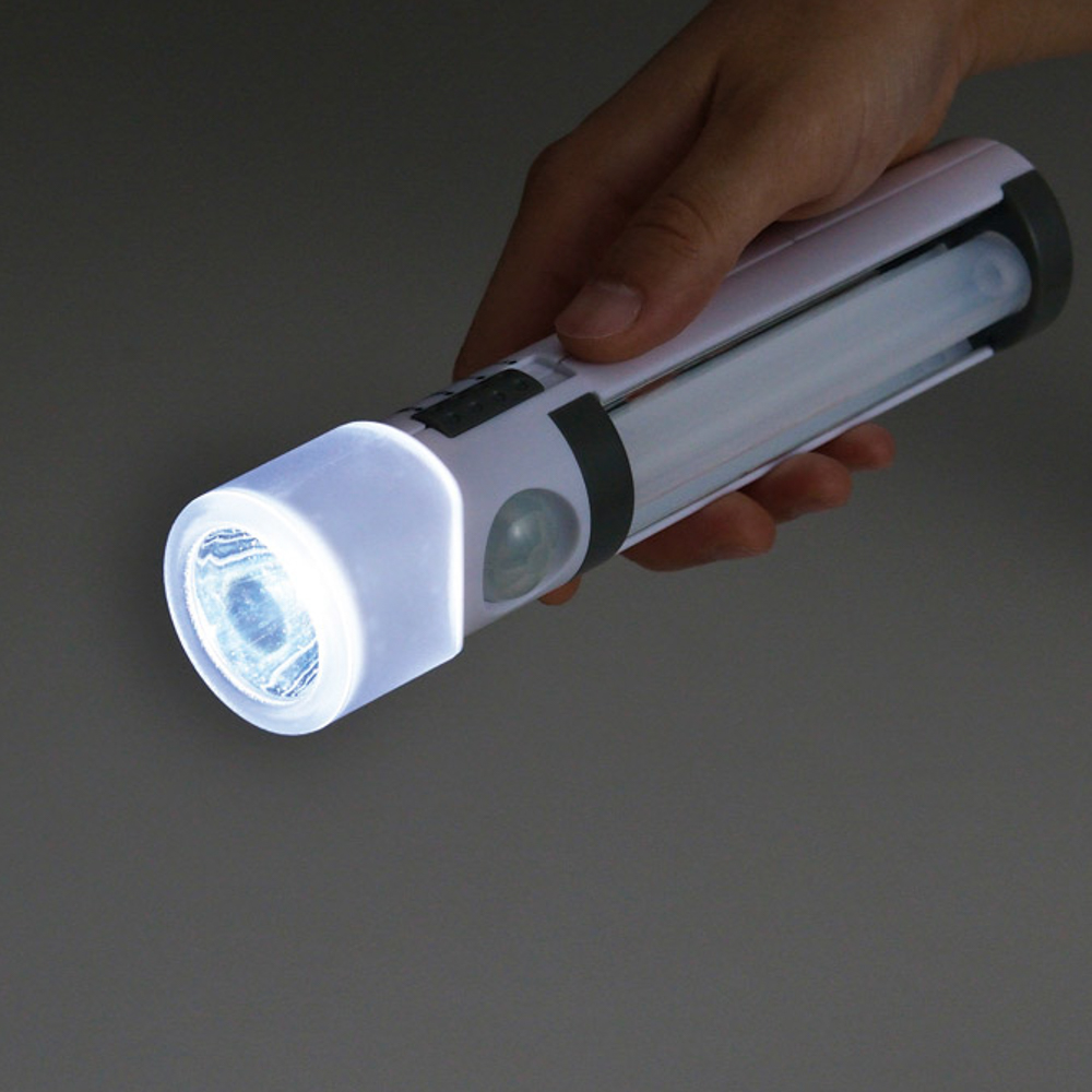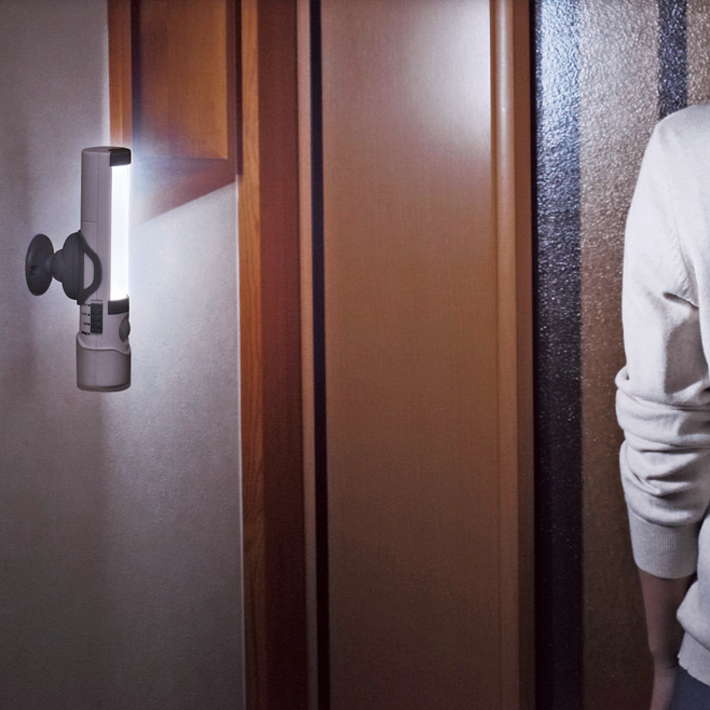 センサーライトモードで人に反応してパッと自動点灯。ライトの角度は簡単に調節できます。また、夜間の散歩や非常灯に、懐中電灯モード、ちょっとした灯りにランタンモード、便利な1台3役です。単3アルカリ乾電池3本使用(別売)。