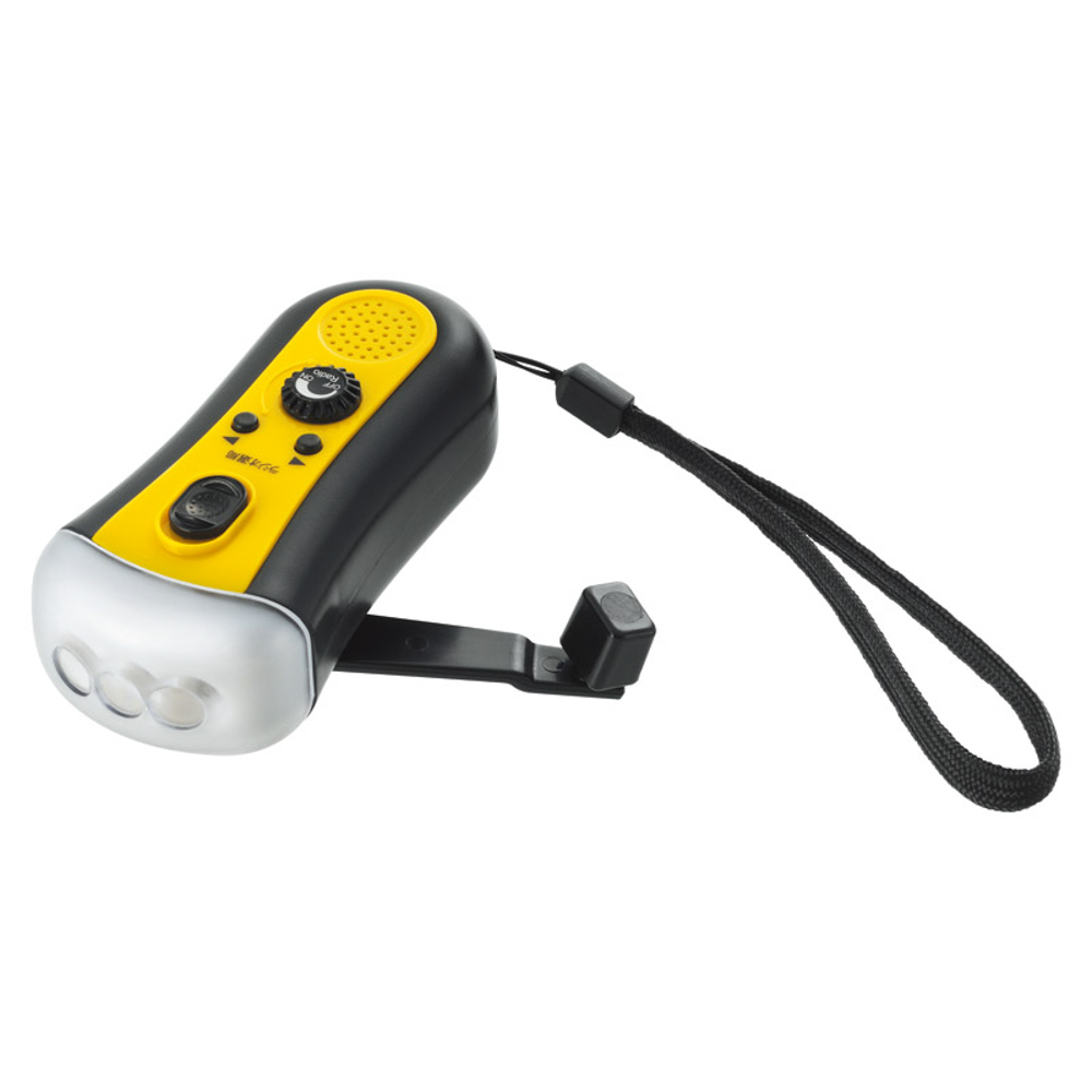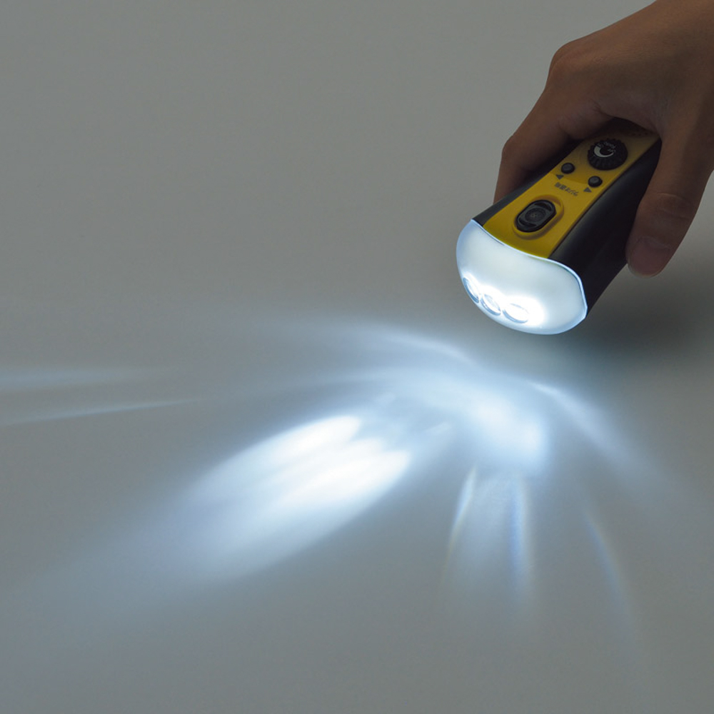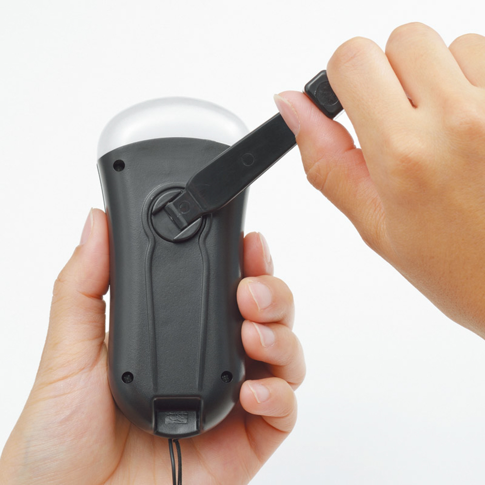 丸いフォルムがかわいらしい。もしもの時のために備えておきたいミニサイズのラジオライト。手回しハンドルで充電して使用ができます。ライトとラジオ機能のみなので、とってもシンプル。誰でも使える簡単操作。光源:LED3灯。