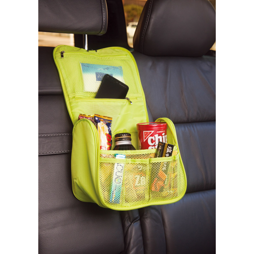 又、自動車のシートのヘッドレストに引っかけて車内の小物入れとしてもお使いになれます。