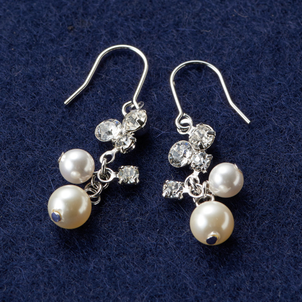 約2×0.6cm・真鍮(シルバーカラーメッキ)、クリスタルガラス、プラスチックパール(径約4・5mm)