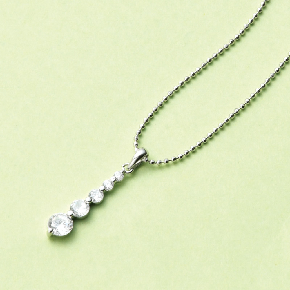 美しい輝きのキュービックジルコニアとジュエリー調のデザインチェーンを使用したシンプルで上品なペンダント。