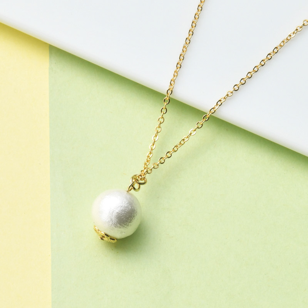 全長約48cm(アジャスター約6cm含む)・コットンパール(径約12mm)、真鍮(金色メッキ)