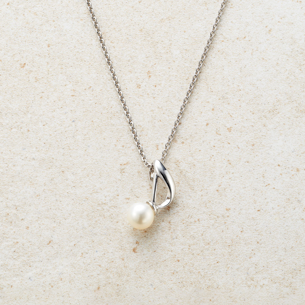 淡水パールを使った、お洒落な音符デザインペンダントです。