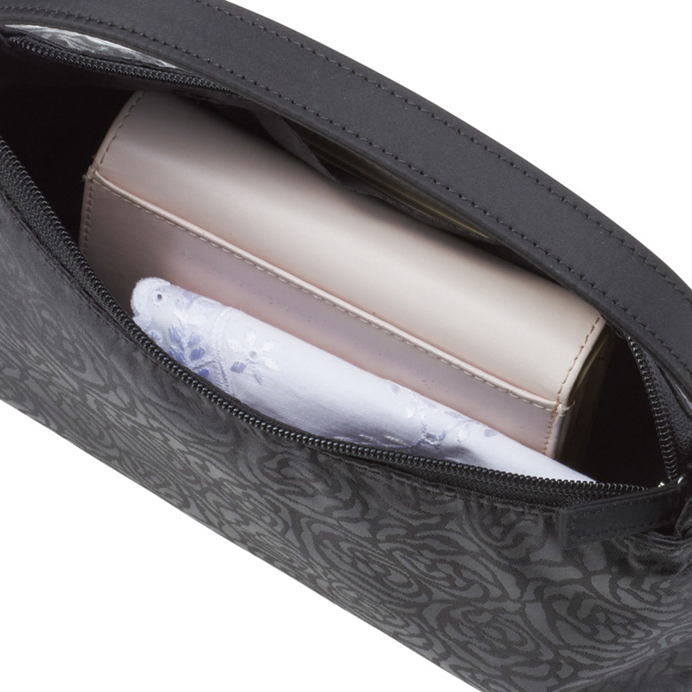 バラ柄が一面に入った、エレガントなフォーマルバッグです。