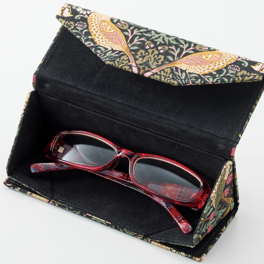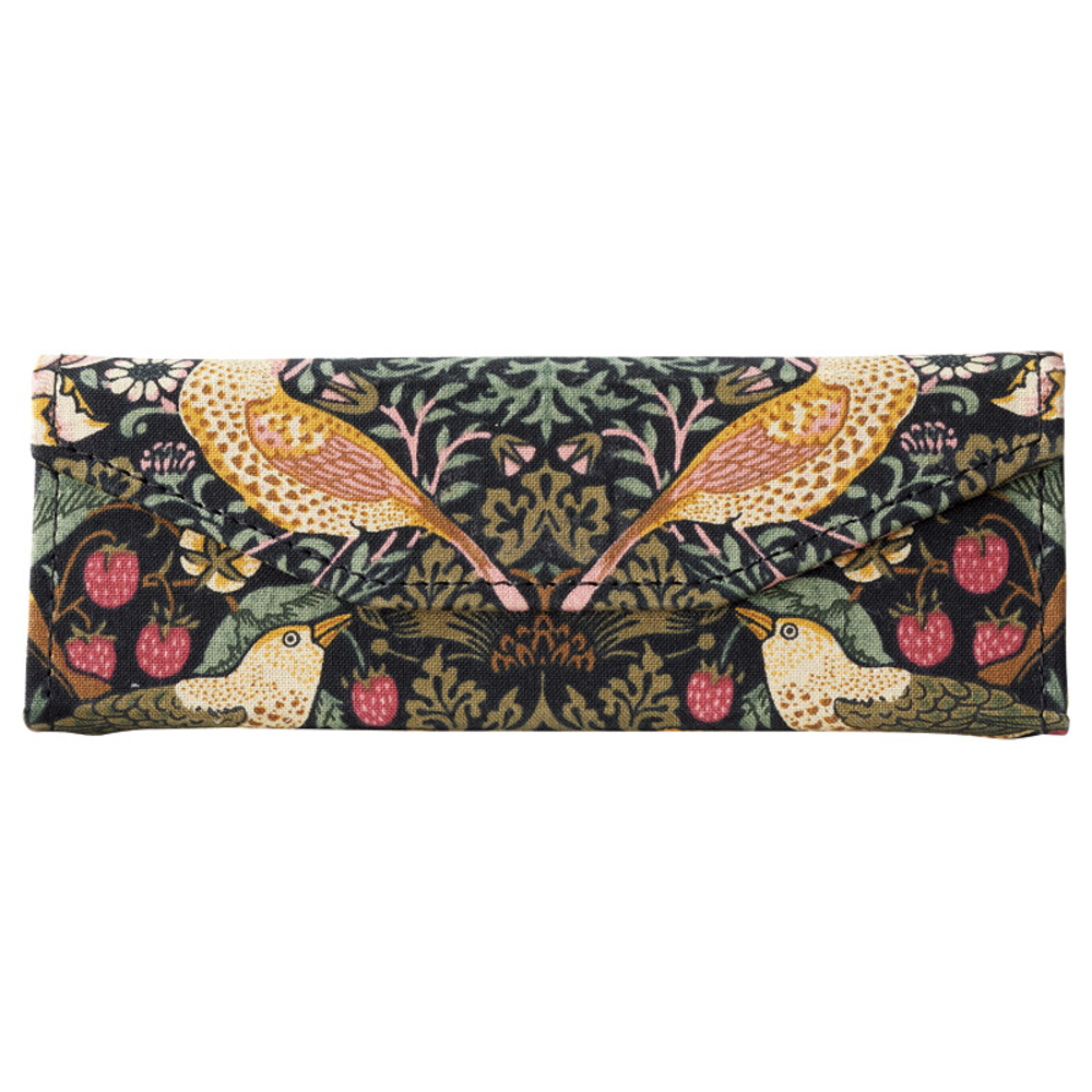 モリスの数多いデザインの中でも、時代を超えて愛される「Strawberry Thief:いちご泥棒」のメガネケースです。