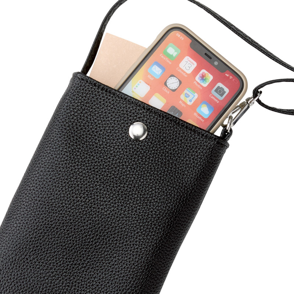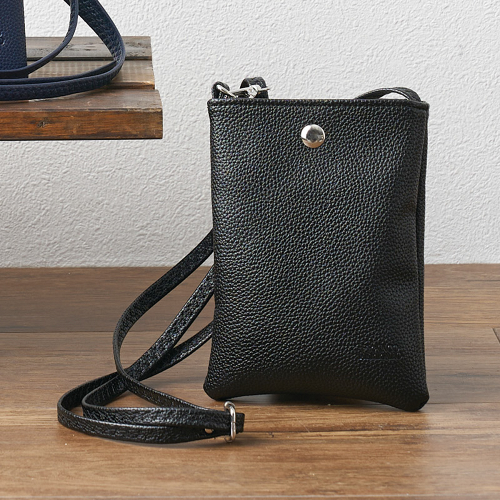 必要最低限のものがしまえるスマホポシェット(縦16cm、横8cm、厚さ1cm程度までのスマートフォンに対応)。使いやすくどんなお洋服にも合わせやすいです。マグネット開閉式。ショルダーベルト着脱不可(長さ調整可)。