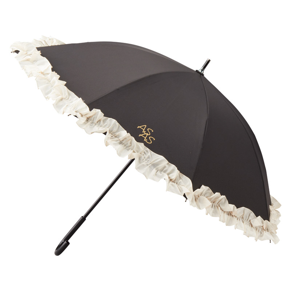 アズアズ晴雨兼用パラソルブラック(フリル部分オフホワイト)