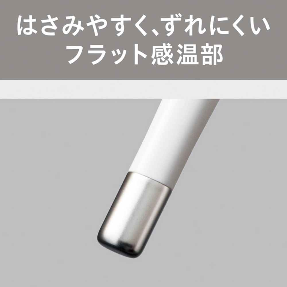 フラット感温部・お知らせブザー・オートパワーオフ・前回値メモリ・電池交換可能。