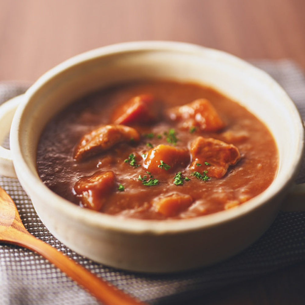 じっくり炒めた玉ねぎに、国産牛の旨味と濃厚ソースが決め手のビーフシチューです。