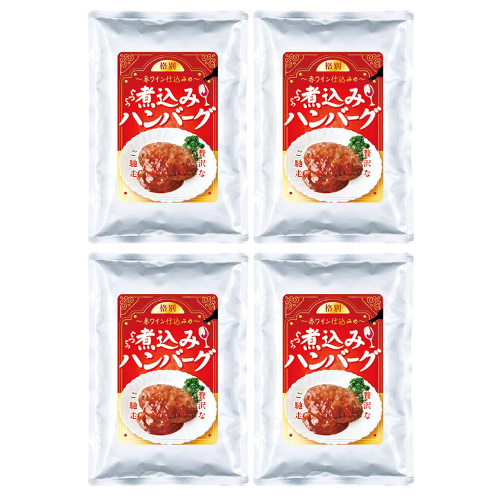 赤ワイン仕込みの煮込みハンバーグ(140g)×4