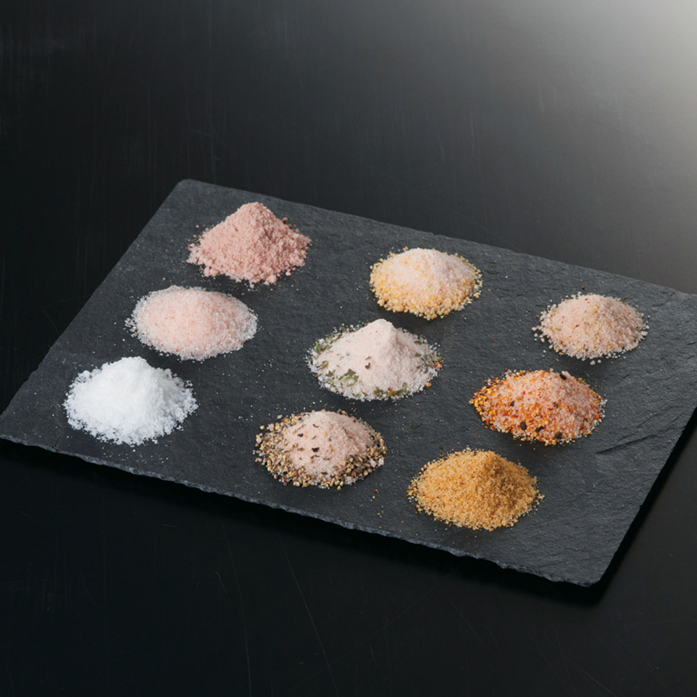 岩塩のほんのりした甘さとこだわりのスパイスを調合したオリジナルソルトで、サッとひと振り、料理の味がきまります。