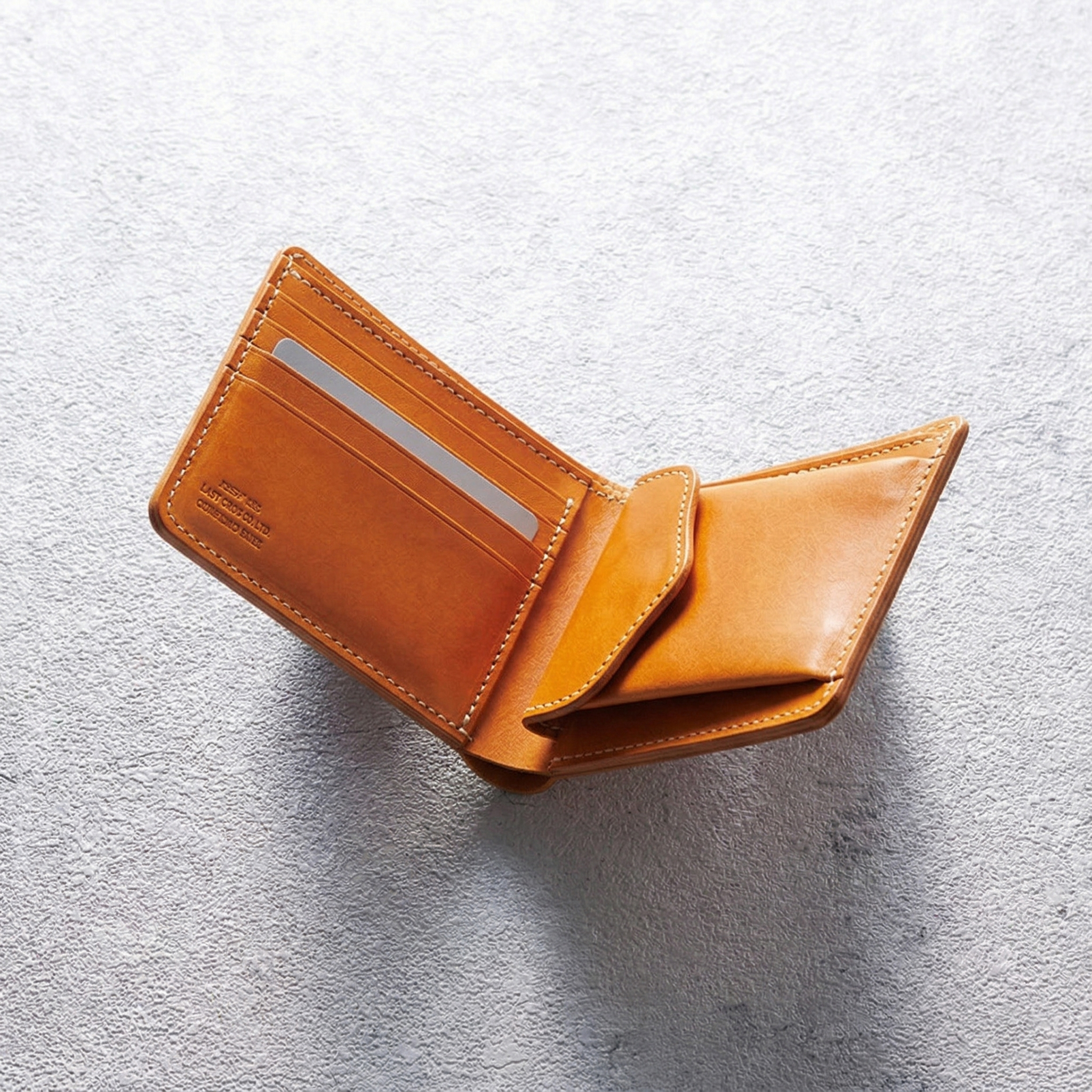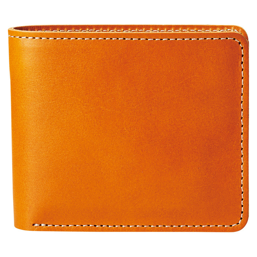 ヌメ革の存在感を活かした折財布は大阪の職人が1針1針丁寧に縫上げています。