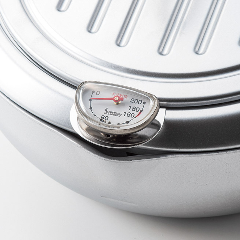 温度管理の大切な天ぷら料理も温度計がついてるから安心。