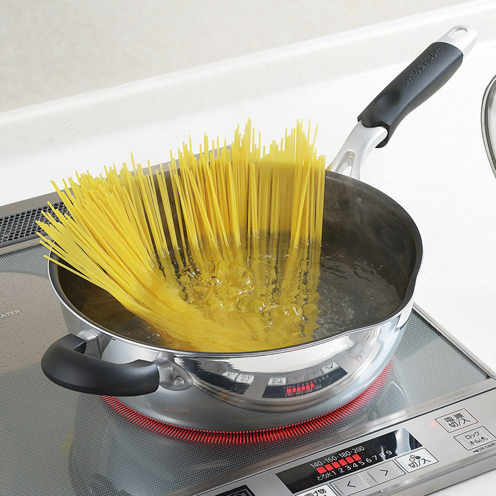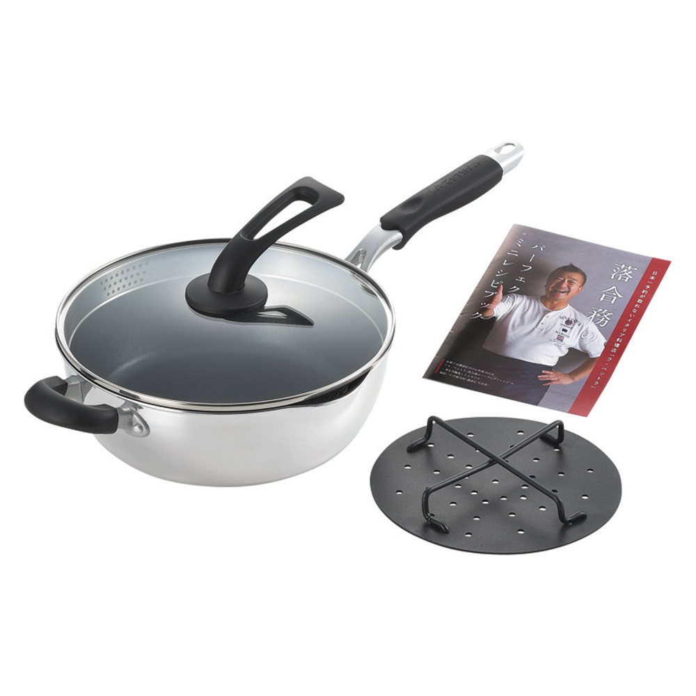| 内容量 | 深型ボイルフライパン26cm(52.8×28×18.5cm・4.1L)・ミートプレス×各1・深型ボイルフライパン26cm:(本体)アルミニウム合金(内面ふっ素樹脂塗膜加工・外面ミラー仕上げ)・(はり底)ステンレス鋼・(蓋)強化ガラス・(取っ手・ツマミ):フェノール樹脂(シリコン塗装)、ミートプレス:ステンレス鋼(ふっ素樹脂塗膜加工) |