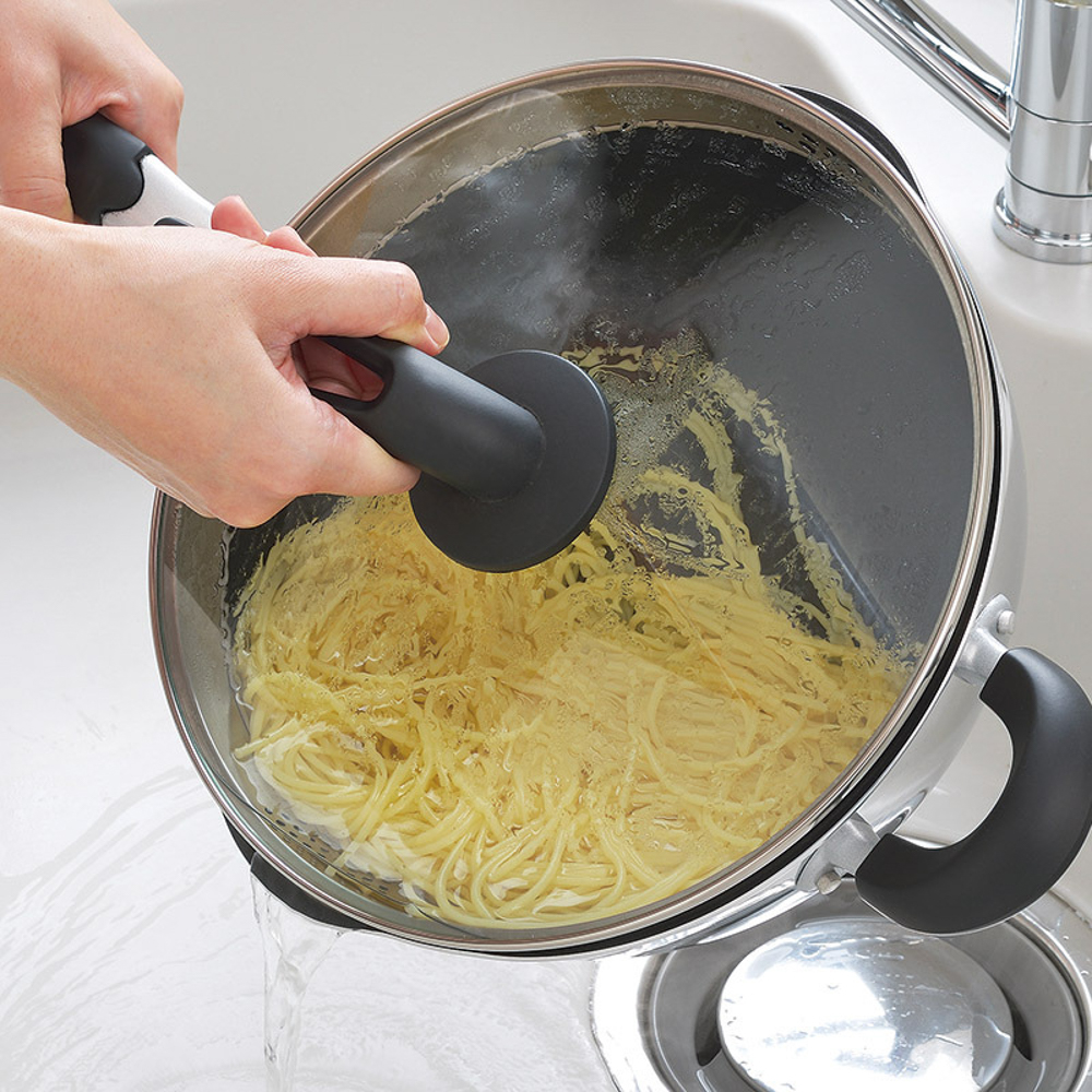 湯切り穴付のため、蓋をしたまま湯切りができます。