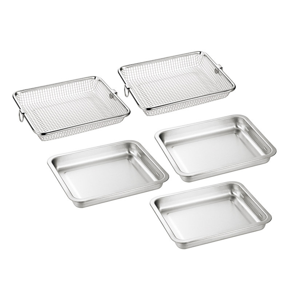 ステンレスバット(25.2×20.5×3.5cm)×3、角ザル(24.5×19.8×3.6cm)×2・ステンレス鋼