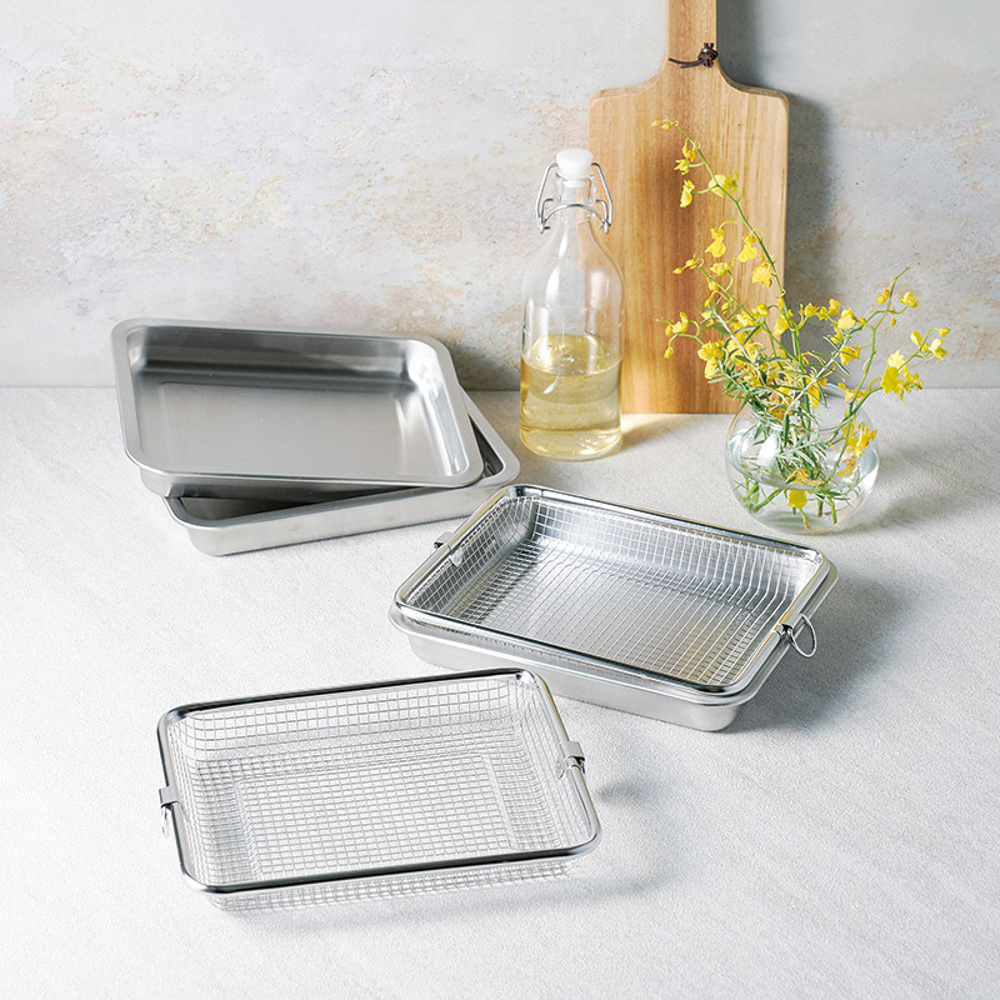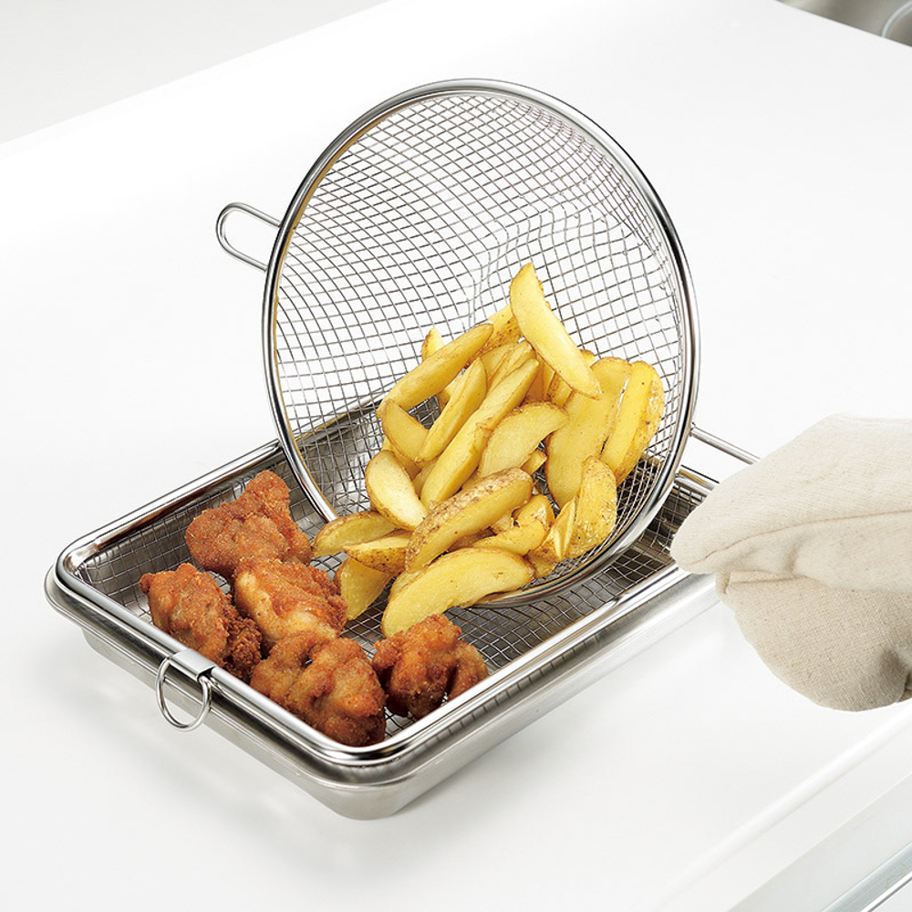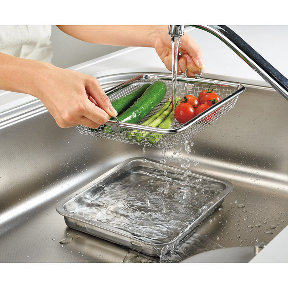 揚げ物の油切りや鍋具材の盛り付けなどに便利なザル付き。