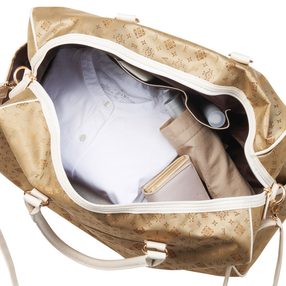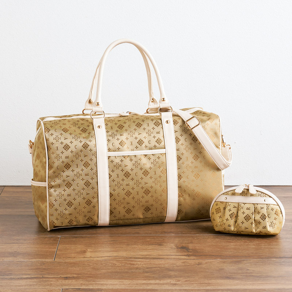 上品なモノグラム生地を使ったボストンと、ポーチのセット。