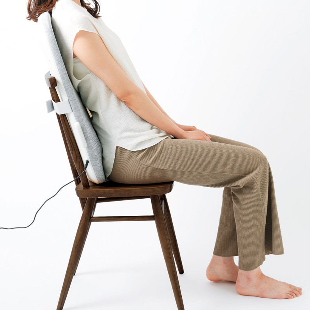 自宅のソファやオフィスなど、どこでも簡単に取り付けてマッサージでき、大小4つのもみ玉が回転しながらコリを深く押しほぐして背中全体を広く癒します。