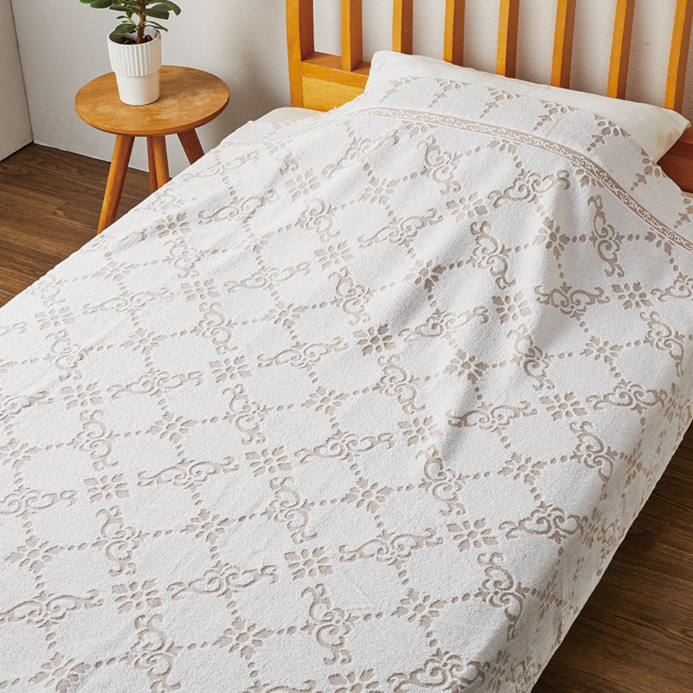 落ち着いた色柄が上品なタオルケットです。