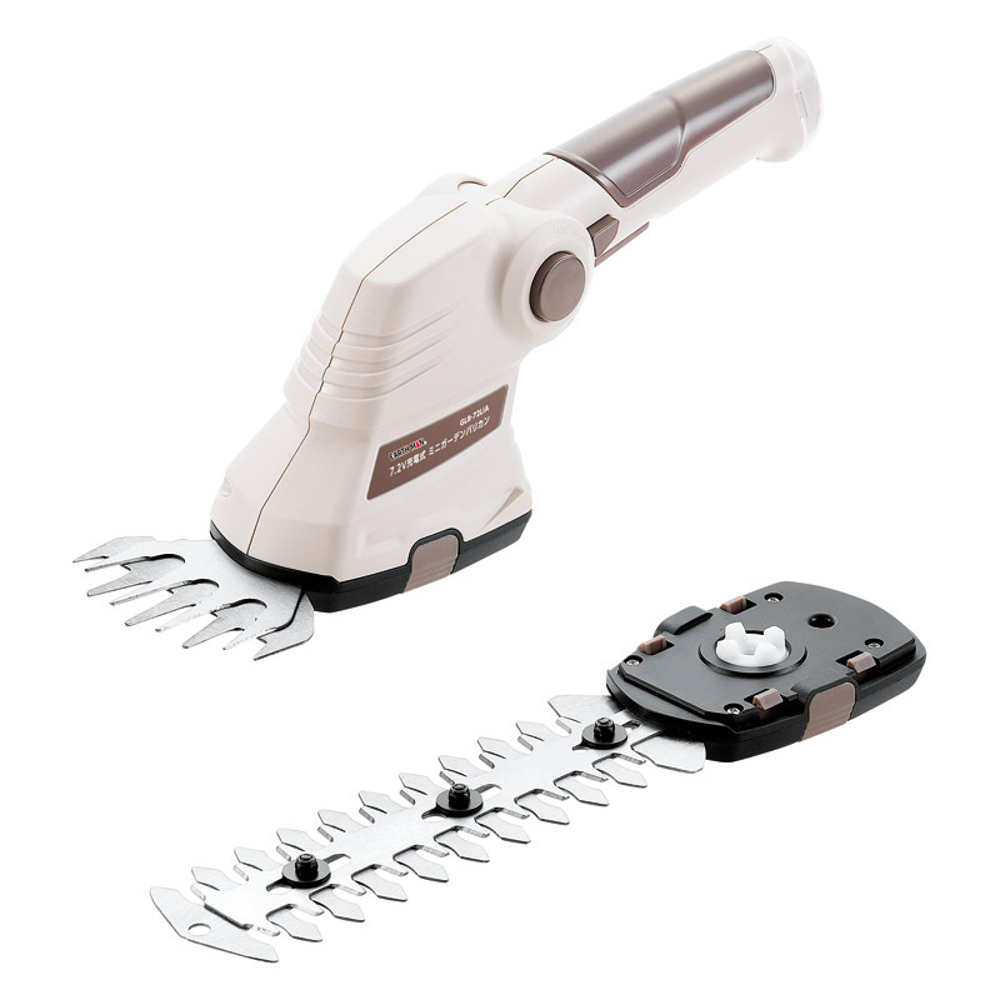 芝生バリカンとヘッジトリマーの2種類のブレードが付属。