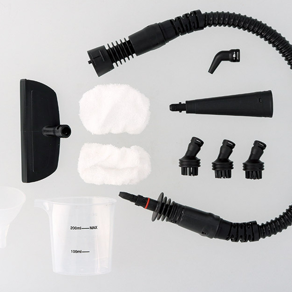 | 内容量 | 本体(26.5×11.5×20.7cm)・ストレートノズル・延長ホース・アングルノズル・アタッチメント・ジョウゴ・メジャーカップ×各1、ブラシ×3、布カバー×2・ポリプロピレン |