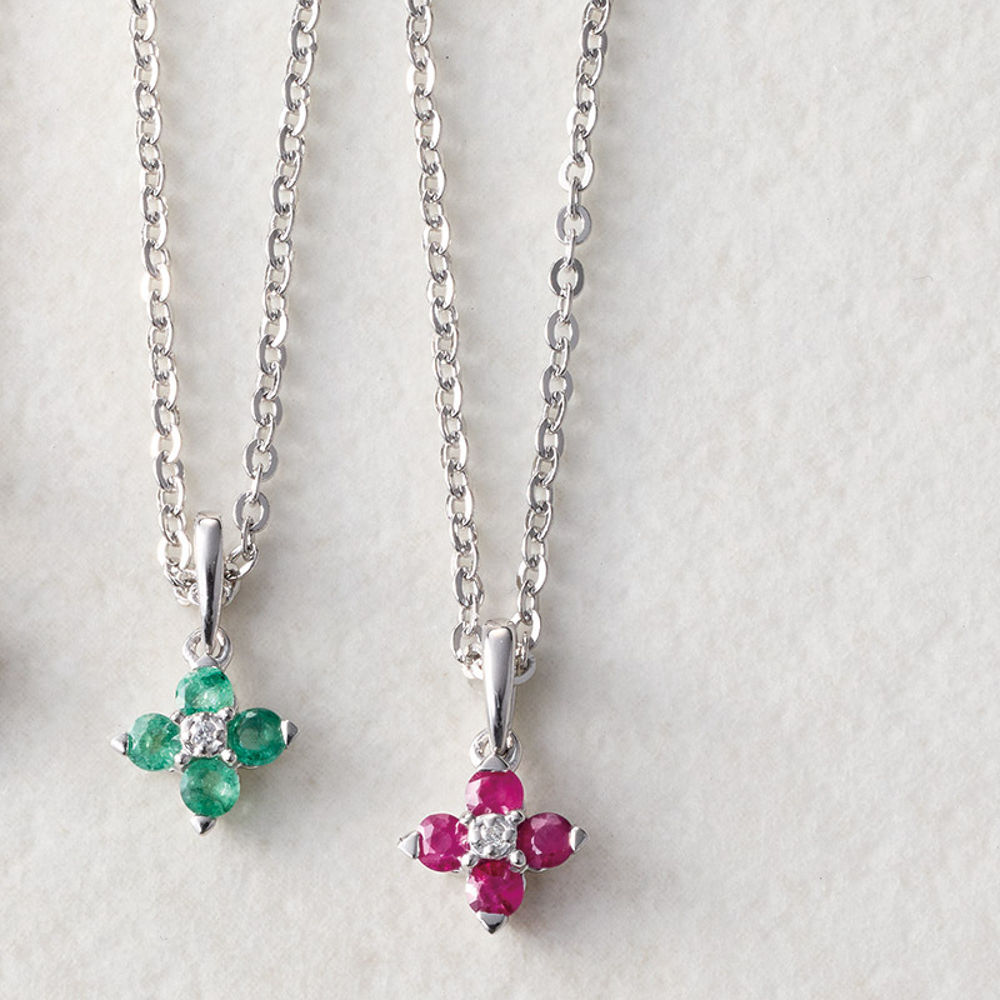 全長約40cm、トップ:約1.3×0.7cm・キュービックジルコニア、シルバー925(ロジウムメッキ)、真鍮(銀色メッキ)、サファイア:サファイア4石、エメラルド:エメラルド4石、ルビー:ルビー4石
