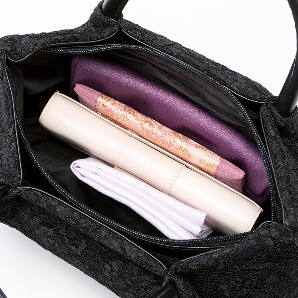 | 内容量 | 22×28×10cm・表地:レース(レーヨン70%・ナイロン30%)、裏地:ナイロン、付属:合成皮革 |