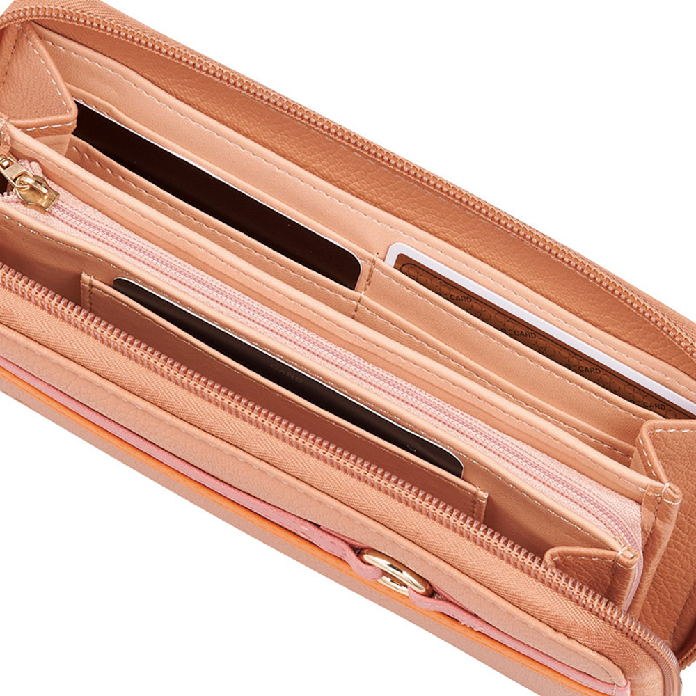 ファスナーポケット(仕切付)×1室、ポケット×4室、カード入れ×8室、背面ポケット×1室。