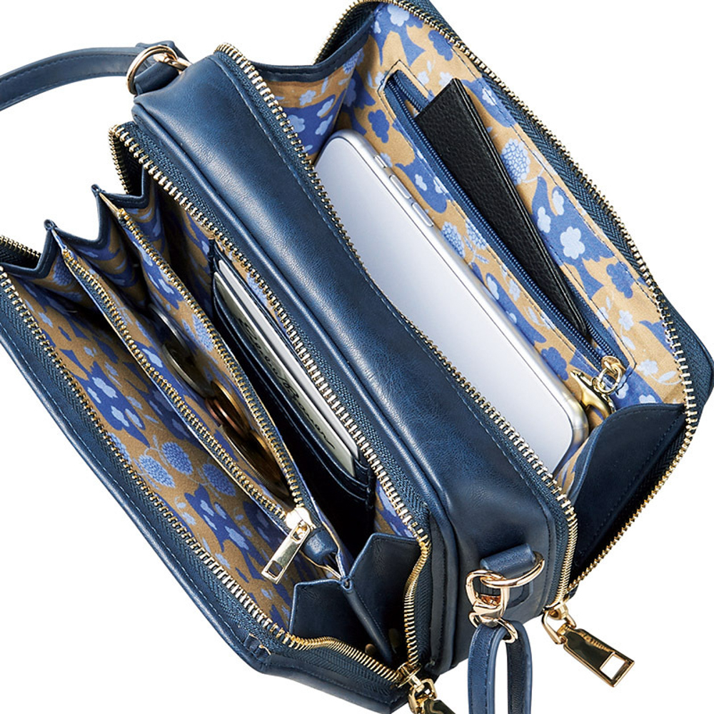 お財布とバッグがドッキングした便利な多機能ショルダーバッグ。