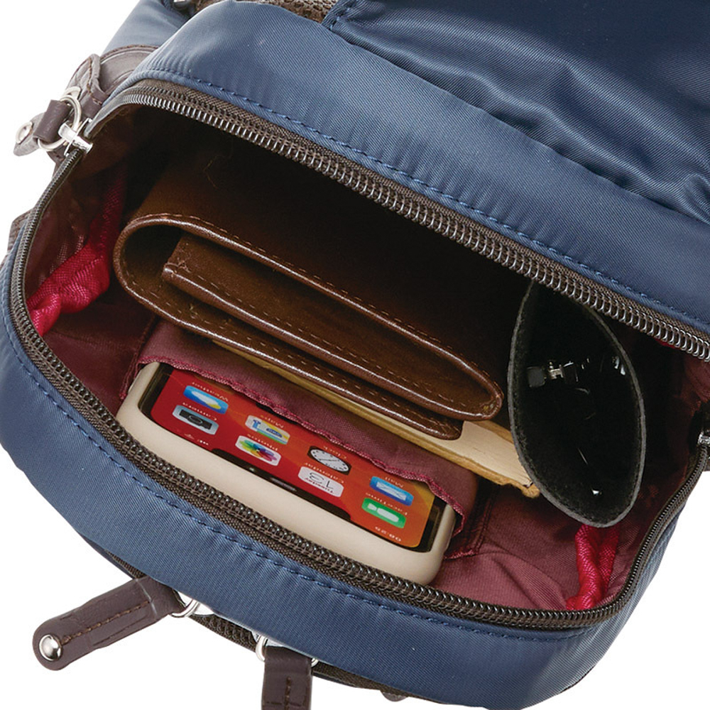 内オープンポケット×1室、外ファスナーポケット×2室。