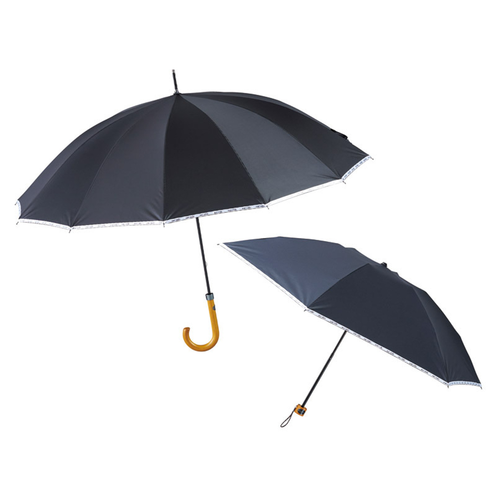 裏シルバーコーティング(遮光傘)、晴雨兼用(UV紫外線カット・撥水加工)の長傘と携帯に便利な裏ブラックコーティング(1級遮光)、晴雨兼用(UV紫外線カット・撥水加工)のミニ傘をセットで。