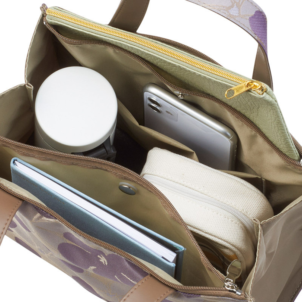 | 内容量 | 手さげ(20×24×12cm)・ショルダー(23×21.5×4cm)×各1・手さげ:(表地)ポリエステル・ナイロン(マチ部分)・(裏地)ナイロン・(付属)ポリエステル・合成皮革、ショルダー:(表地)ポリエステル・(裏地)ナイロン・(付属)ナイロン・合成皮革(見返し部分) |