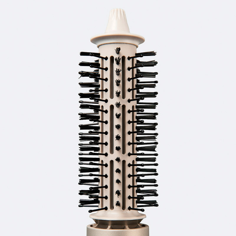 ロールブローブラシ:360度に配されたピンと密度のあるソフトなナイロン植毛が髪をしっかりキャッチします。