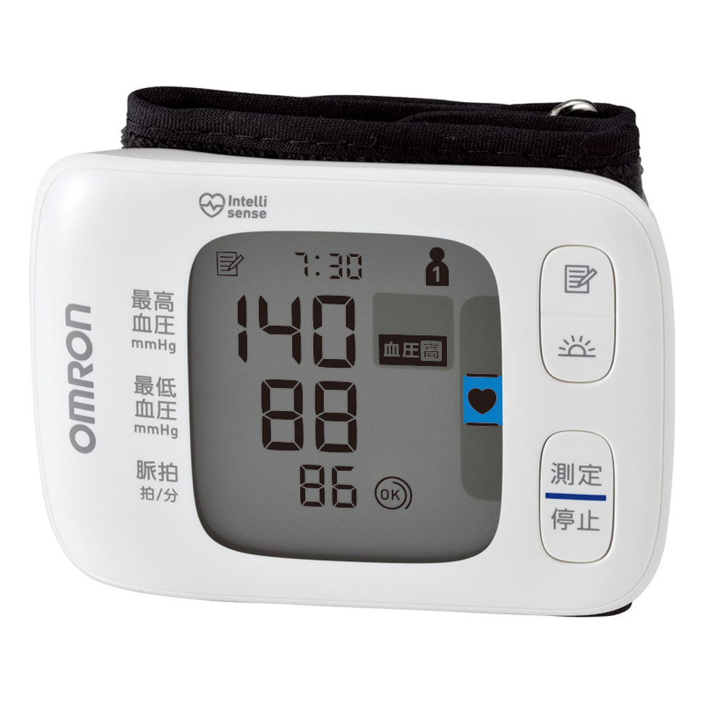 ランプとハートマークで手首と心臓の高さを調整、測定姿勢ガイド搭載。
