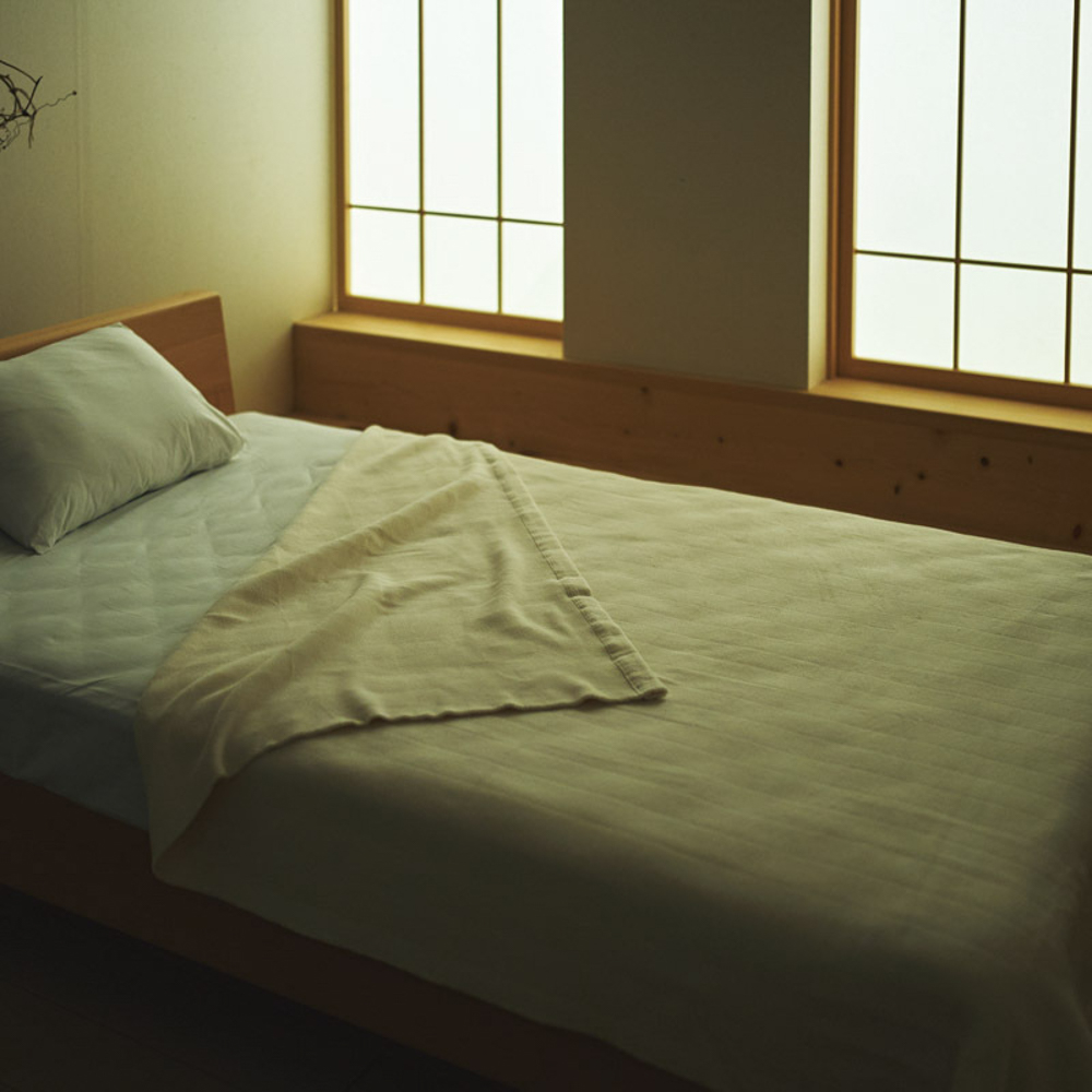 綿本来の生成り色の毛布は軽く柔らかな肌ざわりで保温性・保湿性にすぐれています。