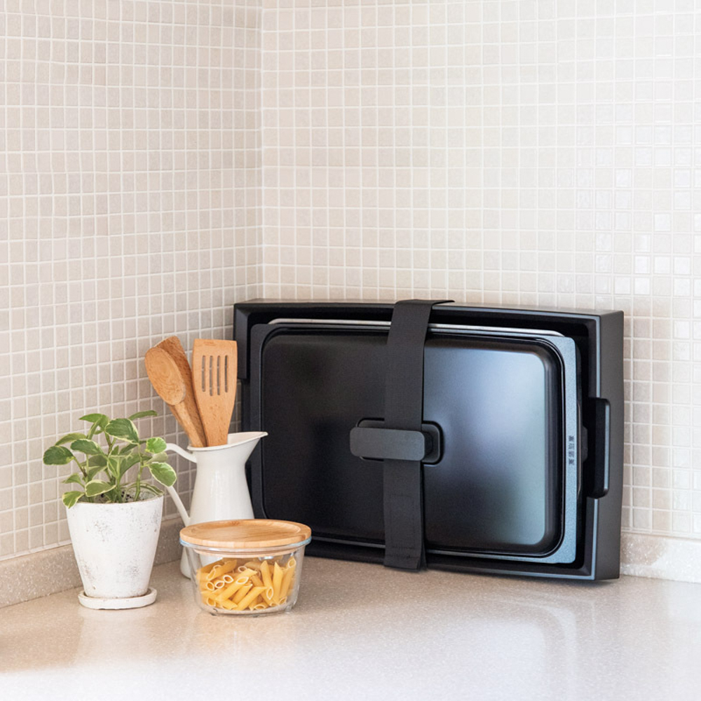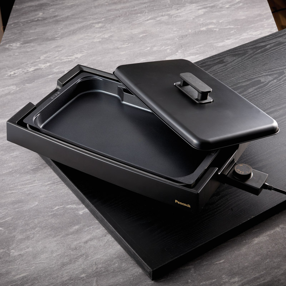 | 内容量 | 32×59.5×9.6cm(フタをしていない状態)・プレート/アルミダイキャスト(フッ素加工)、本体ガード/ポリプロピレン、ふた/鉄板&フェノール樹脂 |