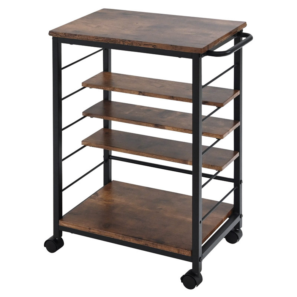 可動式の棚板3枚で置くものの幅や高さに合わせて棚の位置を変えられる自由度の高いワゴンです。