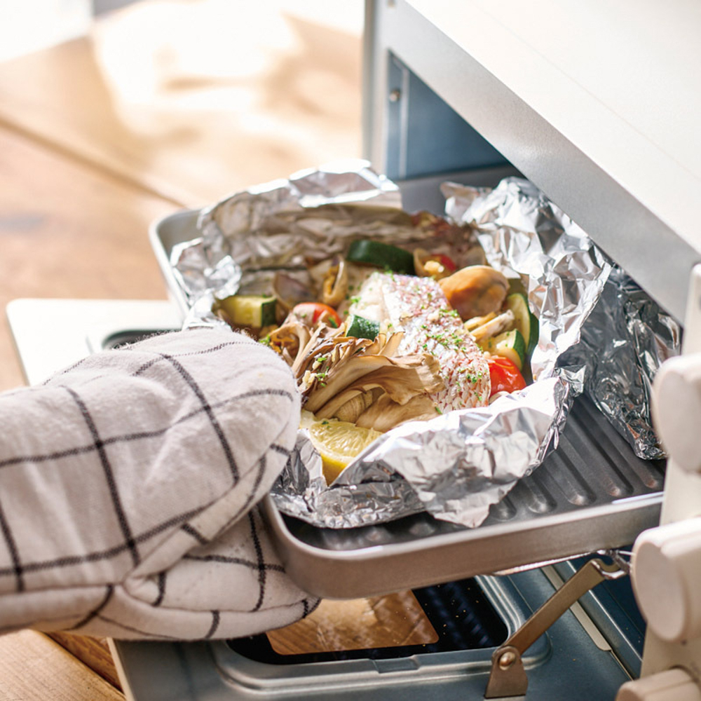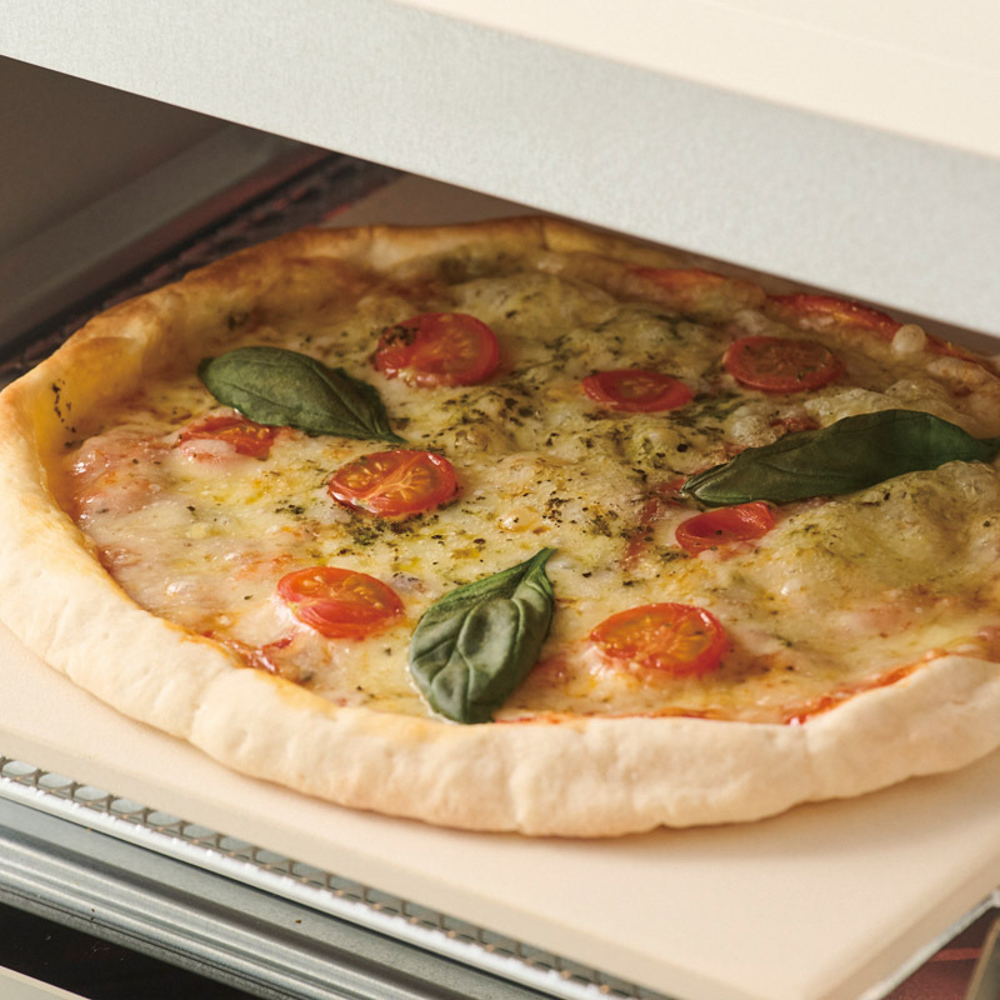 ピザストーンやスチームストーン付きでパンやピザも本格調理できる。